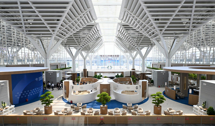 这是在国家会展中心(天津)拍摄的2025夏季达沃斯论坛新领军者村一景(6月22日摄)。图片均为新华每日电讯记者赵子硕摄