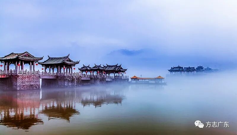 明弘治间,广济桥遭台风破坏,此后历任知府 “继修如制”。至嘉靖九年(1530),知府丘其仁立东西二亭,减去浮舟6艘,遂成“十八梭船廿四洲”格局。清雍正二年(1724),知府张自谦修缮,铸鉎牛二只“镇桥御水”,清道光二十二年(1842),洪水时坠江一只。故潮州民谣有“潮州湘桥好风流,十八梭船廿四洲。廿四楼台廿四样,两只鉎牛一只溜。”潮州也有“到广不到潮,枉费走一遭;到潮不到桥,白白走一场”之民谚,可知广济桥在潮人心中的地位。
