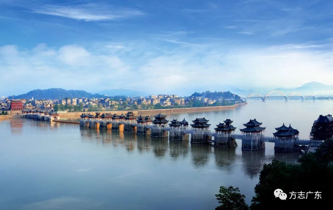 广济桥,又名湘子桥,是集梁桥、拱桥、浮桥于一体的古桥,位于潮州市湘桥区潮州古城东门外韩江上。桥梁专家茅以升称其为“世界上较早的开合桥”,“是我国桥梁史上的一个特例”。1988年,国务院公布其为全国重点文物保护单位。